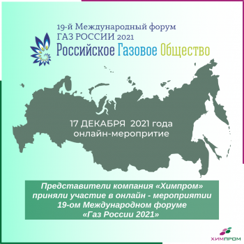 17 декабря 2021г. представители компании «Химпром» приняли участие в 19-ом Международном форуме «Газ России 2021», который состоялся в формате онлайн.