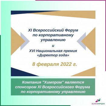 Компания «Химпром» является спонсором XI Всероссийского Форума по корпоративному управлению, который состоится 8 февраля 2022 года в Москве.