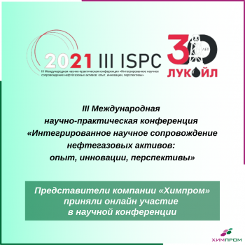 Представители компании «Химпром» приняли онлайн участие в III Международной научно-практической конференции «Интегрированное научное сопровождение нефтегазовых активов: опыт, инновации, перспективы», посвященной 30-летию ПАО «ЛУКОЙЛ».