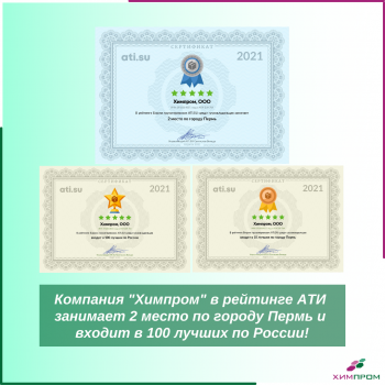Компания "Химпром" по итогам 11 месяцев 2021 года вошла в ТОП рейтинга АТИ
