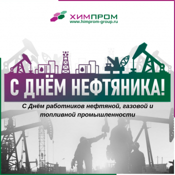 Уважаемые партнеры, коллеги и друзья, коллектив компании «Химпром» поздравляет вас с профессиональным праздником, с Днём работников нефтяной, газовой и топливной промышленности!